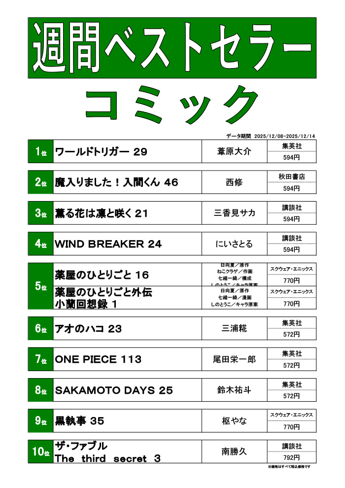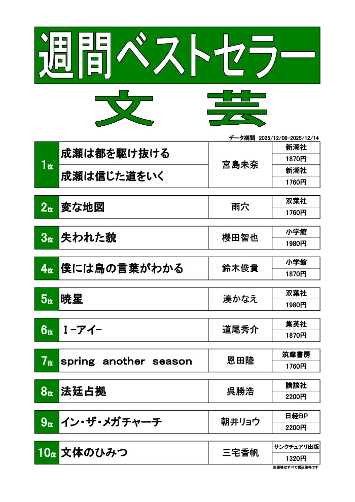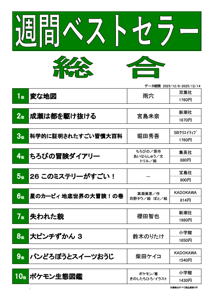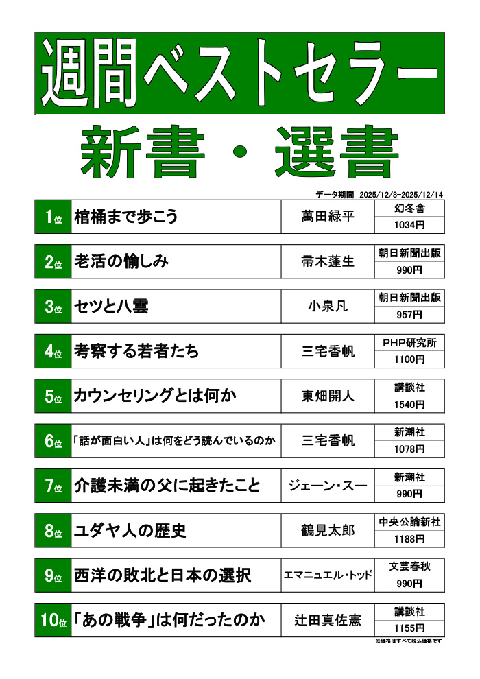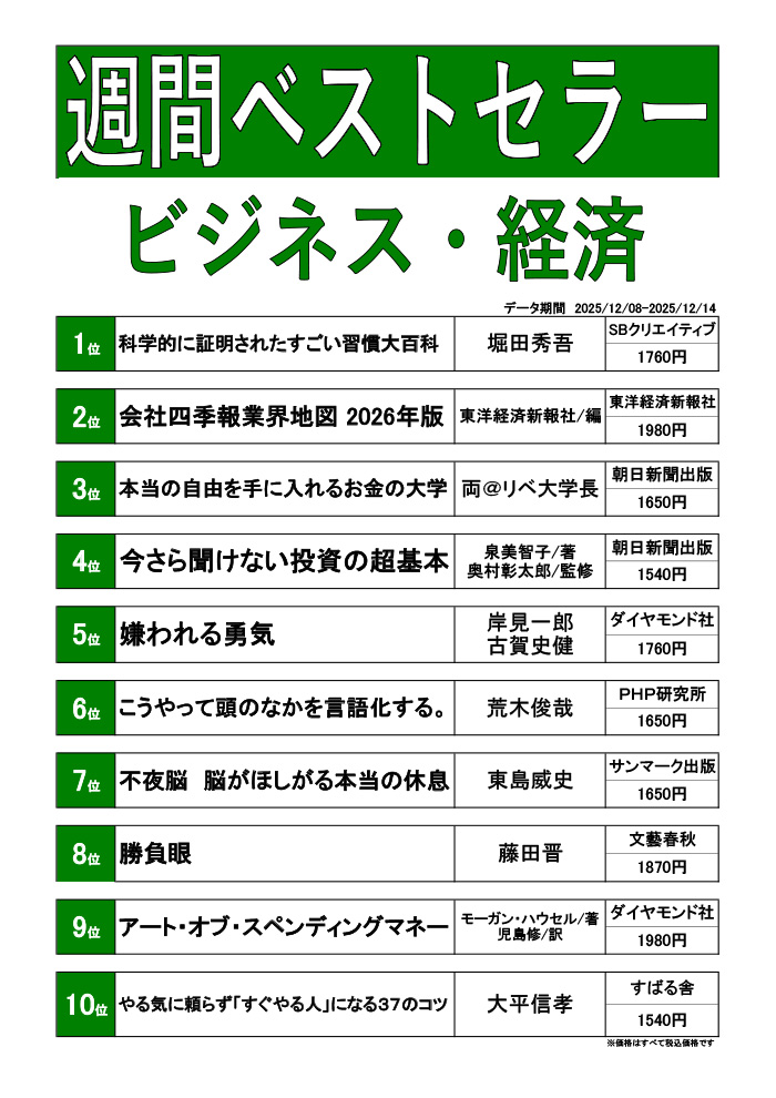 週刊ベストセラーランキング(12/8~12/14)