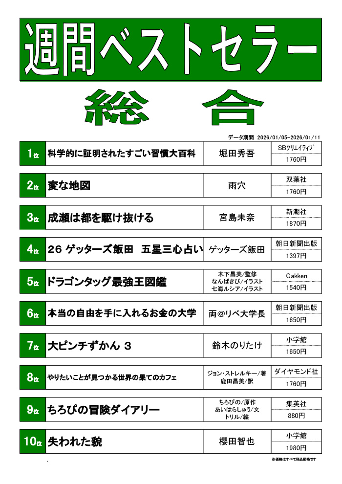 更新 2026/1/14(水) 週刊ベストセラーランキング(1/5~1/11) 2026/1/14(水) ショップへ戻る イベントニュース ショップガイド サイゼリヤ 久喜西口店 ゲームコーナー 占いコーナー カラオケ レインボー 久喜店 珈琲屋 OB デイリーヤマザキ 久喜駅西口店 千年の宴 久喜西口駅前店 こだわりやま 久喜クッキープラザ店 久喜ホルモン おいで屋 たんぽぽ保育園 大和証券 久喜営業所 河合塾マナビス 個別教室のトライ 久喜駅前校 ドルフィン 久喜店 ほけんの窓口 久喜クッキープラザ店 ビューティーサロン1113 NOVA 久喜校 エム歯科クリニック 100円ショップワッツウィズ 久喜駅前店 クッキープラザ生鮮館 化粧専科 a team 森塾 久喜校 みずほ銀行 久喜支店 くまざわ書店 フロアガイド B1F 1F 2F 3F 4F 5F 施設サービス アクセス 求人情報 サイトマップ プライバシーポリシー お問い合わせ 閉じる ×