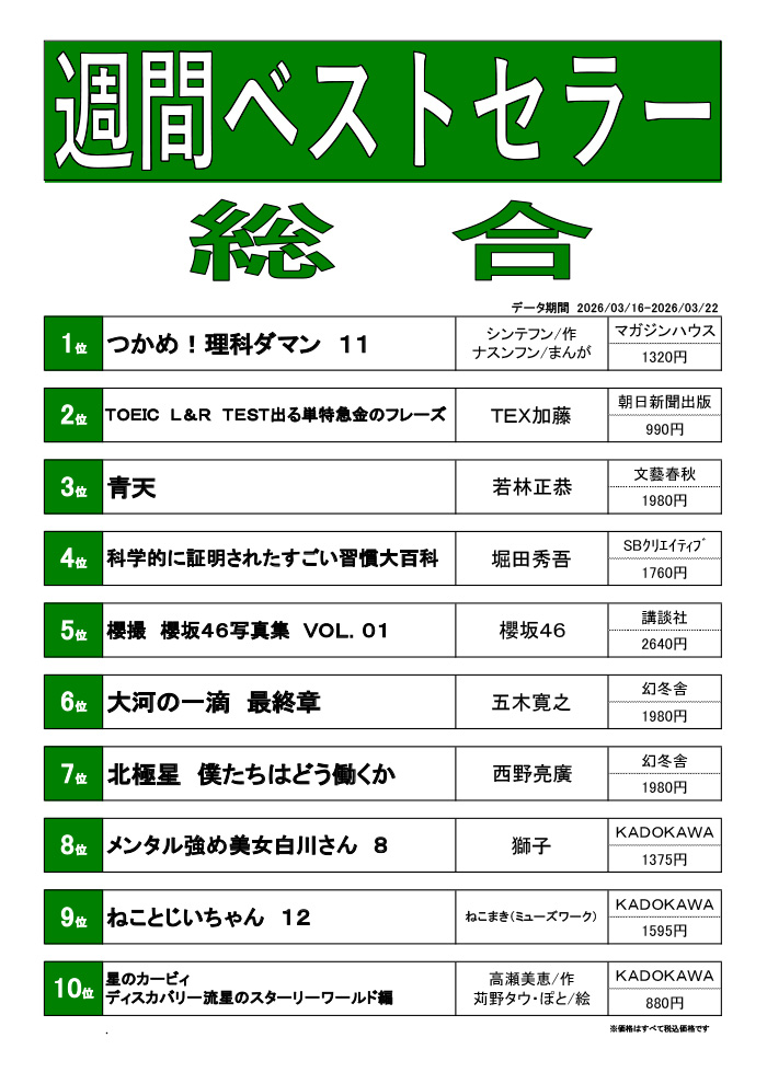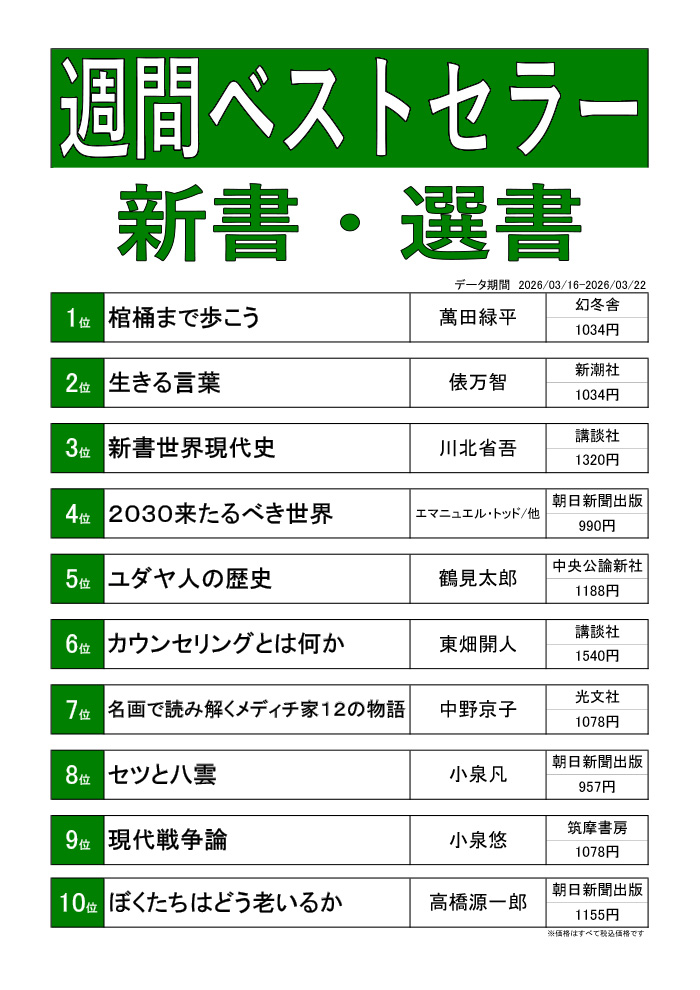 更新 2026/3/23(月) 週刊ベストセラーランキング(3/16~3/22) 2026/3/23(月) ショップへ戻る イベントニュース ショップガイド サイゼリヤ 久喜西口店 ゲームコーナー 占いコーナー カラオケ レインボー 久喜店 珈琲屋 OB デイリーヤマザキ 久喜駅西口店 千年の宴 久喜西口駅前店 こだわりやま 久喜クッキープラザ店 久喜ホルモン おいで屋 たんぽぽ保育園 大和証券 久喜営業所 河合塾マナビス 個別教室のトライ 久喜駅前校 ドルフィン 久喜店 ほけんの窓口 久喜クッキープラザ店 ビューティーサロン1113 NOVA 久喜校 エム歯科クリニック 100円ショップワッツウィズ 久喜駅前店 クッキープラザ生鮮館 化粧専科 a team 森塾 久喜校 みずほ銀行 久喜支店 くまざわ書店 フロアガイド B1F 1F 2F 3F 4F 5F 施設サービス アクセス 求人情報 サイトマップ プライバシーポリシー お問い合わせ 閉じる ×